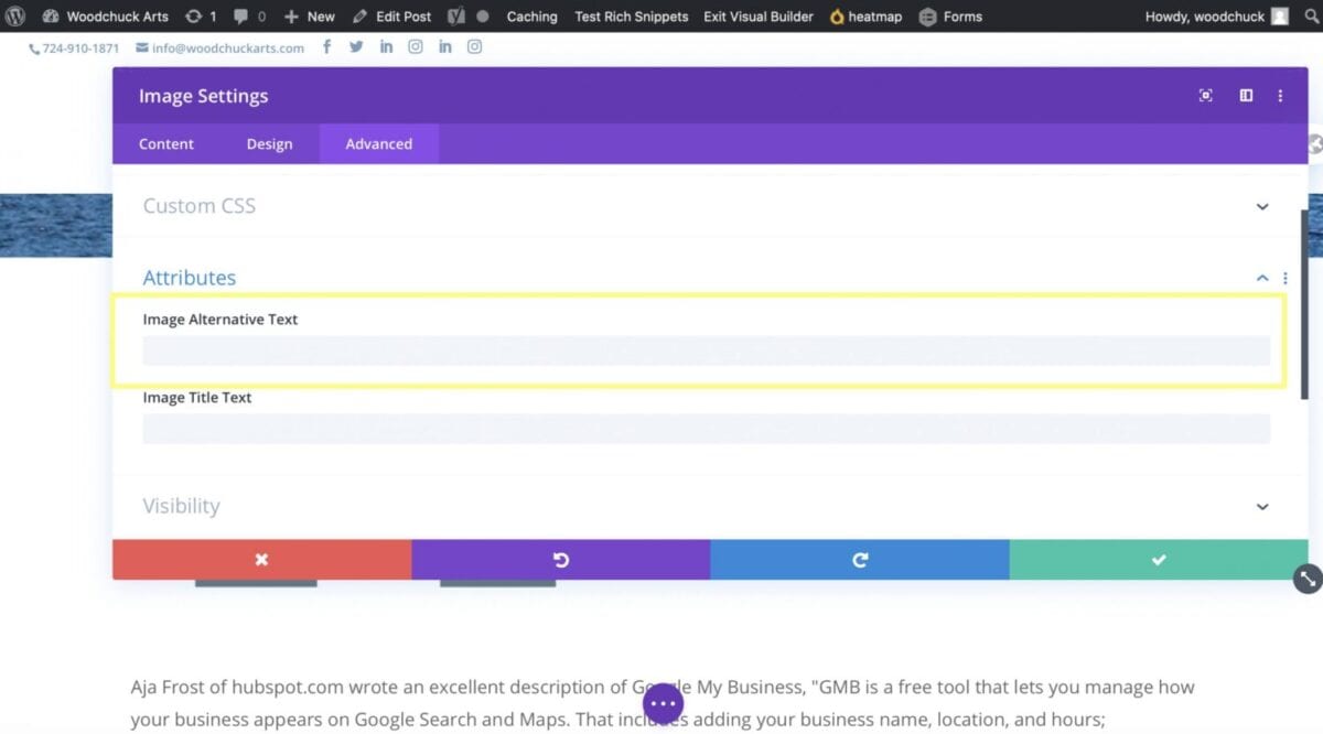 If Woodchuck built your website for you in the past four years, it probably is built with Divi. If you don’t have WordPress and you need help finding where to put the alt tags, send us an email, and we would be glad to take a peek for you.