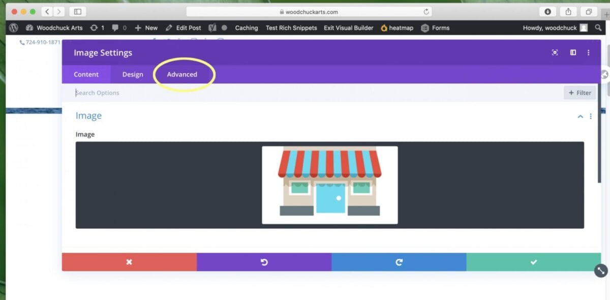 When the image module opens, click Advanced.
