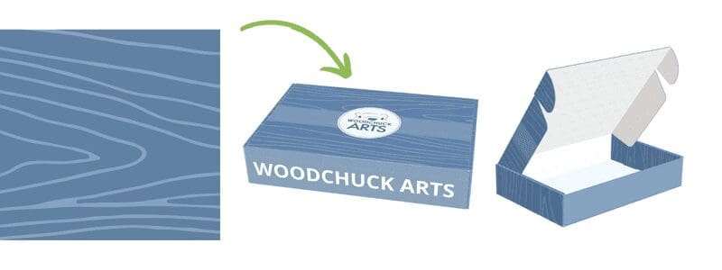 There are many types of patterns your business could decide to go with, some ideas could be repeated variations of your logo, blocks of text, artistic illustrations, or natural elements like the wood grain pattern we use here at Woodchuck!